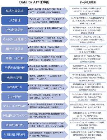 これらの例は、金融分野におけるオープンデータの多様な活用方法と、それによって得られる具体的な効果を示しています。