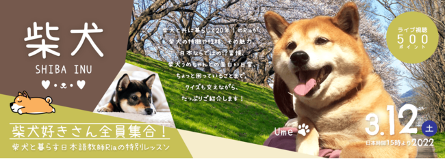 申し込みページ:https://cafetalk.com/campaign/2022/seminar/ria/shiba-inu/?lang=ja