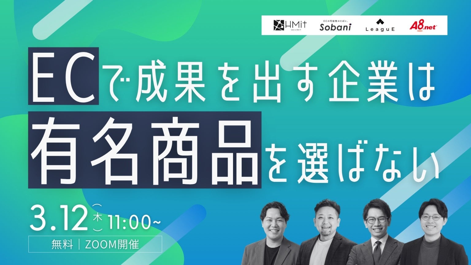 株式会社LeaguEは、4社共催のオンラインセミナー『ECで成果を出す企業は「有名商品」を選ばない』を2026年3月12日(木)11時から開催いたします。