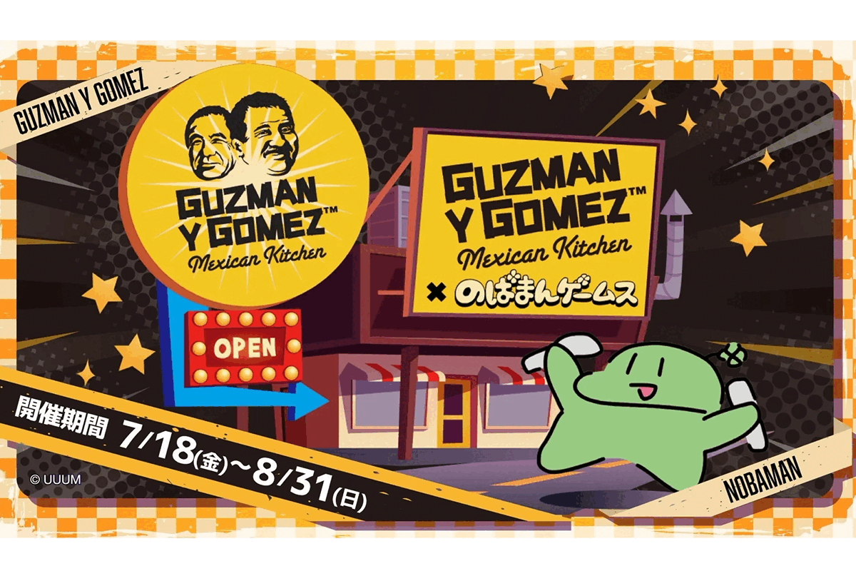 株式会社トランジットメキシカンフードオペレーション(本社:東京都渋谷区、代表取締役 亀山 里樹)が運営するファストカジュアルスタイルのメキシカンキッチン「Guzman y Gomez(グズマン イー ゴメズ、以下GYG)」は、登録者数約75万人のゲーム実況クリエイター「のばまんゲームス」とのコラボレーション企画を2025年7月18日(金)より実施いたします。