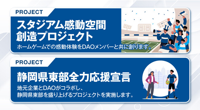 クラブは昨年、J3のライセンス喪失危機を脱し、経営体制の一新や中山雅史監督の就任を経て、J2昇格を見据え次のステージに向かうためにクラブの想いをまとめた「DNA OF AZUL CLARO(※)」を公開しました。このDNAに基づき、「アスルクラロDAO」では、「感動が生まれるスタジアムづくり」や地元企業とのコラボプロジェクトなど、参加メンバーと共に実施することで、静岡県東部を地域内外の多くの人々が集うエリアとして盛り上げていきます。