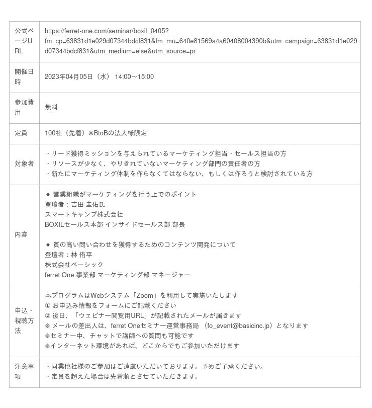 https://ferret-one.com/seminar/boxil_0405?fm_cp=63831d1e029d07344bdcf831&fm_mu=640e81569a4a60408004390b&utm_campaign=63831d1e029d07344bdcf831&utm_medium=else&utm_source=pr