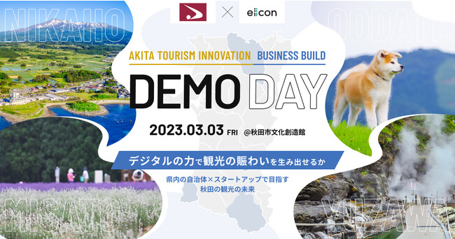 eiicon company(所在地:東京都港区南青山、代表:中村 亜由子)は、秋田県より受託運営している、「令和4年度 デジタル技術を活用した観光エリア支援事業」(以下、本事業)の今年度運営業務において実施している、秋田4地域(大館市、にかほ市、美郷町、湯沢市)をデジタルの力で観光の賑わいを創出する共創プロジェクトの成果を発表する『AKITA TOURISM INNOVATION BUSINESS BUILD DEMO DAY』を2023年3月3日(金)秋田市内で開催することをお知らせします。あわせて、本DEMO DAYの参加者募集を本日より開始いたします。