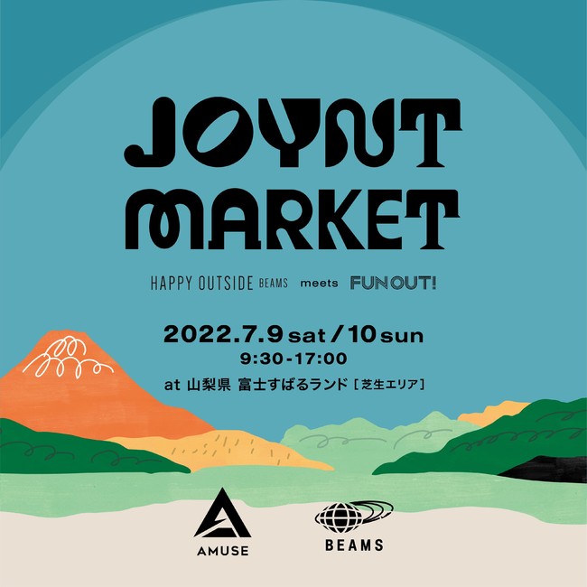 株式会社アミューズ(本社:山梨県南都留郡富士河口湖町、代表取締役 中西正樹)は、株式会社ビームス(本社:東京都渋谷区、代表取締役社長 設楽洋)と、山梨県に位置する富士すばるランドにて、野外体験型マーケットイベント「JOYNT MARKET -HAPPY OUTSIDE BEAMS meets FUN OUT!-」を、7月9日(土)・10日(日)に共同開催いたします。