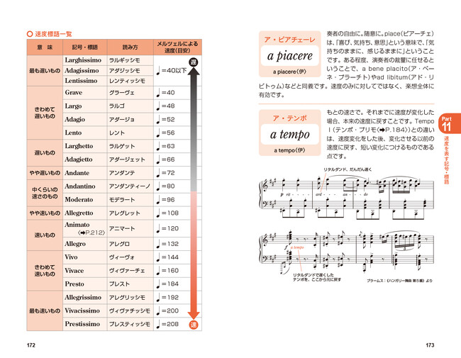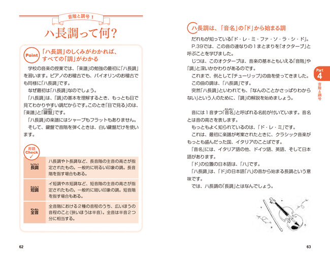 Part 1 楽譜のしくみPart 2 音の高さと長さPart 3 リズムと拍子Part 4 音階と調号Part 5 和音(コード)Part 6 音楽記号と用語Part 7 譜表と音部記号Part 8 音符と休符Part 9 変化記号と調号Part 10 拍子記号Part 11 速度を表す記号・標語Part 12 省略記号・反復記号Part 13 強弱記号・標語Part 14 発想を表す標語Part 15 奏法を表す記号・標語Part 16 形式・曲種和文さくいん欧文さくいん