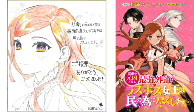 投票そして応援して下さりました皆様、本当にありがとうございます!松浦ぶんこ先生のお陰で魅力ある漫画に仕上げて頂き、素敵な賞まで頂けました。これからも宜しくお願い致します。皆様に心からの感謝を。
