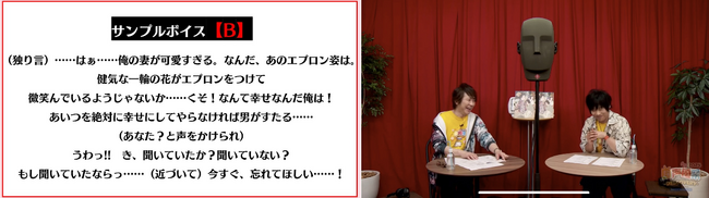 岩崎のキューの後、置鮎がサンプルを読み上げると、ダミーヘッドマイクの性能もあり、まるで耳元で囁かれるような激甘ボイスにコメント欄も「癒される…!」「優しい旦那様だ」などのコメントで溢れます。