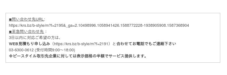また、ビースタイル取引先企業に対して表示価格の半額でサービス提供いたします。