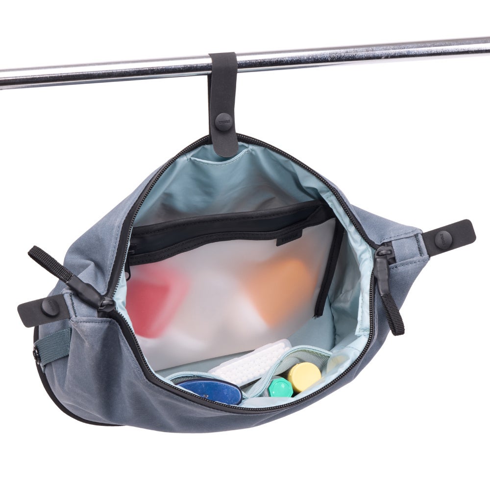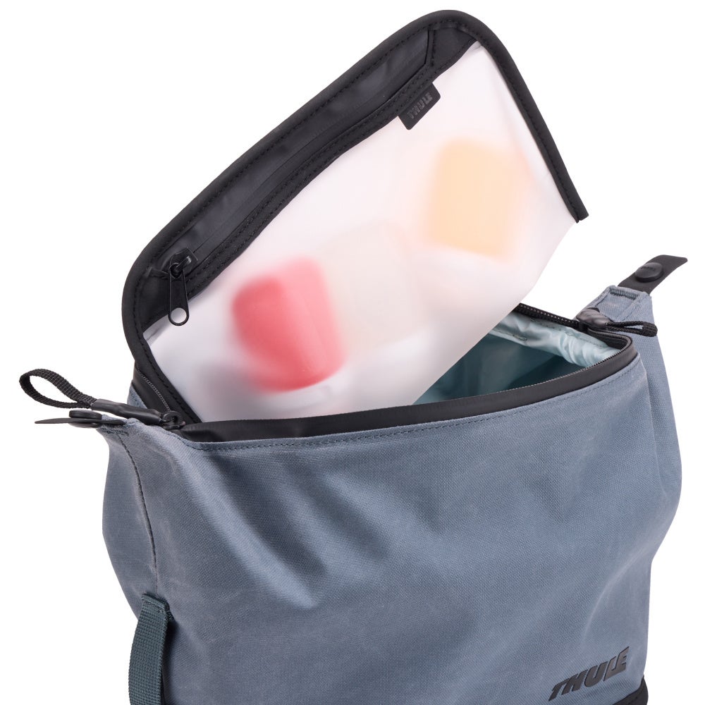 清掃しやすい素材の液体用ポーチはTSA液体規則にも準拠。