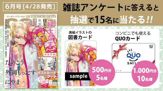 アンケートに答えると下記豪華賞品が当たるビーボーイゴールド愛読者プレゼント実施中!