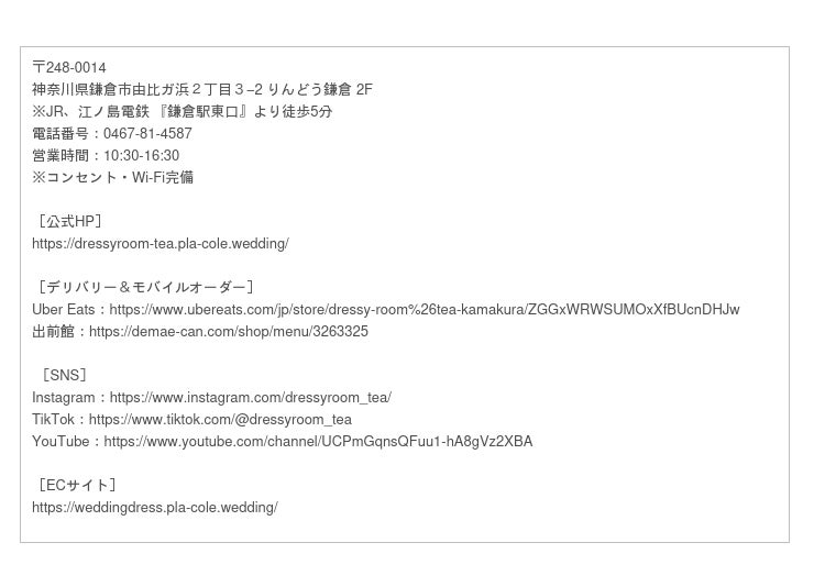 鎌倉 店舗情報:-お花とドレスと紅茶のお店- DRESSY ROOM&Tea