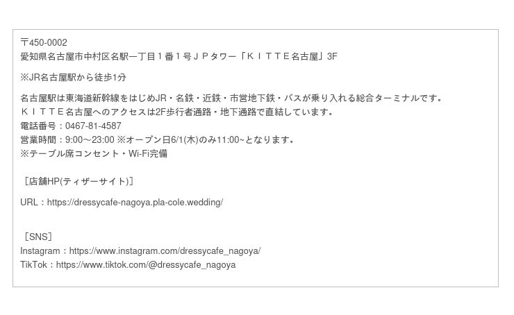 『DRESSY CAFE』公式HP:https://dressycafe-nagoya.pla-cole.wedding/