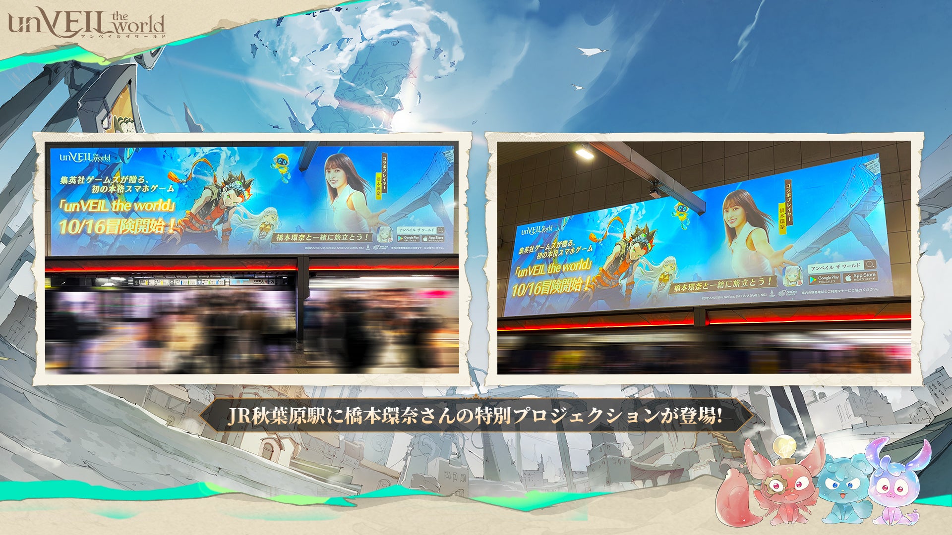 サービス開始を記念して、東京の秋葉原、渋谷、池袋、新宿の人気商業地域および秋葉原駅の改札内(山手線内回りホーム)、ゲームキャラクターと橋本環奈さんを起用した大型広告を同時掲出。さらに、6台のラッピングカーによるプロモーションキャラバンが秋葉原の中心部を走行するなど、東京では多岐にわたるオフラインキャンペーンを展開しています。キャンペーン詳細:https://x.com/unveil_JP/status/1978415559701098742