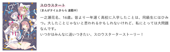 連載10周年「スロウスタート」と、「おちこぼれフルーツタルト」「IDOL×IDOL STORY!」の3作品をピックアップ。