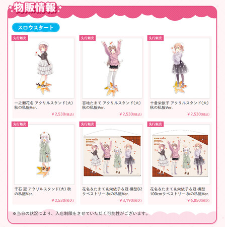 ・アクリルスタンド(大) 秋の私服Ver. 各¥2,530(税込) [発売:二次元コスパ]