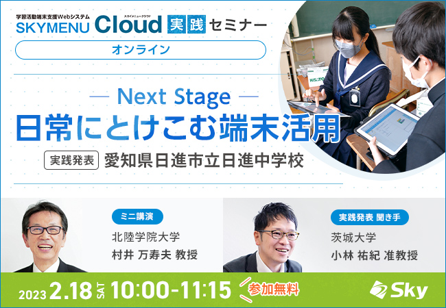 【2月18日開催】<『SKYMENU Cloud』実践セミナー オンライン>―Next Stage―日常にとけこむ端末活用〜実践発表:愛知県日進市立日進中学校〜