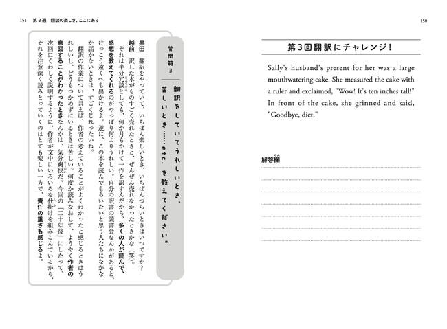 どう読む? 訳す? 深く読み、言葉を吟味し、仲間の答えに耳を傾ける。そして議論し互いに刺激し合うことで、着実に力をつける。中学2年生の生徒たちが見せる大人顔負けの深い読み、名訳、時々とびだす珍訳(!)……彼らののびのびとした自由な発想に刺激され、日本語と英語をいききするなかで、翻訳の楽しさ、奥深さを存分に体感いただけるはずです。人気翻訳家から翻訳のノウハウを学びつつ、英語や日本語の力、読解力、そして言葉の感度も上がり、大きな成長のきっかけが得られる画期的な書籍です。