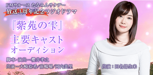 ※”FMサルース たなみんサタデー ボイスドラマ主要キャストオーディション”というイベントにご応募ください。