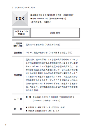 事案の調査で最初に手にする、ハラスメント種類別判例インデックス!