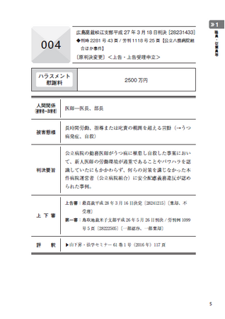 判決文を読むことなく、ハラスメント事件の慰謝料認定額とその判決要旨をすぐに確認することができます。