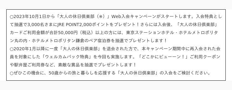 (キャンペーンページ:https://www.jreast.co.jp/otona/cmp/web_nyukai2.html)