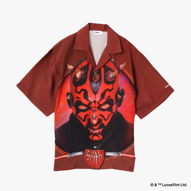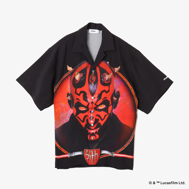展開されるラインナップは、主要キャストである「アナキン・スカイウォーカー」、「パドメ・アミダラ」、「ダースモール」、「バトル・ドロイド」、「C-3PO」、「R2-D2」といった人気キャラクターから「N-1スターファイター」や「ドロイド司令船」など「スター・ウォーズ」の世界観を存分に表すモチーフを「アトモス」らしいアイデアでアレンジしたTシャツやオープンカラーシャツを用意。Tシャツは、各キャラクターをプリントでデザインし、左のショルダーには「アトモス」のロゴを刺繍。ブラック展開は統一で、キャラクターを想起させるカラーも交えてそれぞれ2色でレパートリーしました。また、オープンカラーシャツは、様々なキャラクターを総柄で加えたインパクトあるルックスで作りこんだこだわりのウェアとなります。