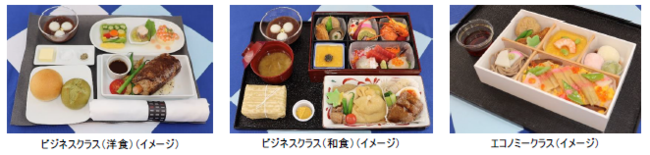 スの洋食は「”骨つき肉”をイメージしたハンバーグ」、和食は「おでんとすき焼き」、エコノミークラスは