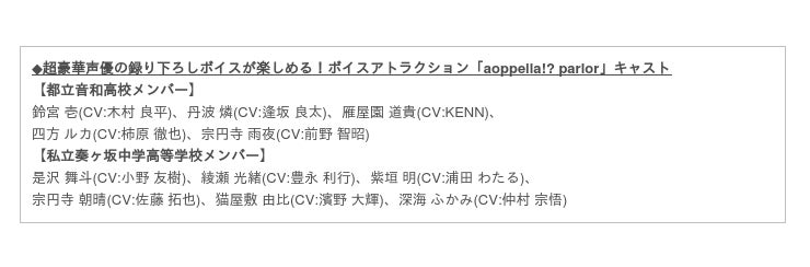 ◆ボイスアトラクション「aoppella!? parlor」