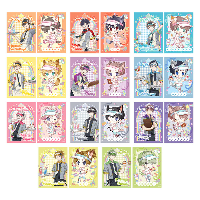 コラボ限定イラストを使用したオリジナルグッズを販売します。『アオペラ -aoppella!?-』関連商品を1会計につき税込2,000円お買い上げごとに、ねこ型カード(全22種/ランダム配付)を1枚プレゼント!
