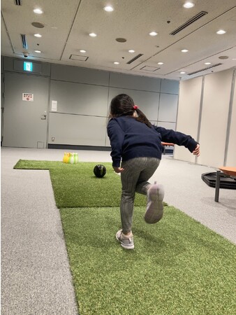 サッカーボールをキックして、ボーリングピンを倒そう!正しいボールの蹴り方も身につきます!