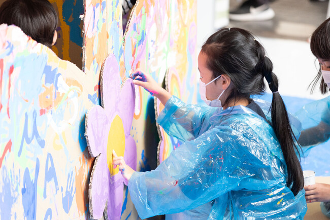 大きなダンボールに絵の具で自由に色を塗り、みんなで一緒に作品を完成させよう!絵の具で思いっきり楽しめるカラフルで楽しいワークショップです!