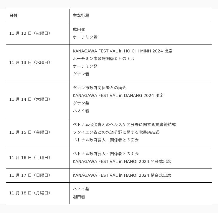 ベトナム・ホーチミン市、ダナン市及びハノイ市において「KANAGAWA FESTIVAL 2024」を開催するとともに、ベトナム保健省やフンイエン省との覚書締結や、ベトナム政府要人との面会等を行い、神奈川県とベトナムとのより一層の交流拡大を図るため、知事がベトナムを訪問します。