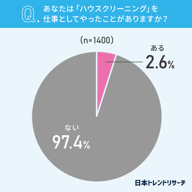2.6%の方が、「ハウスクリーニング」を仕事としてやったことが「ある」と回答しました。