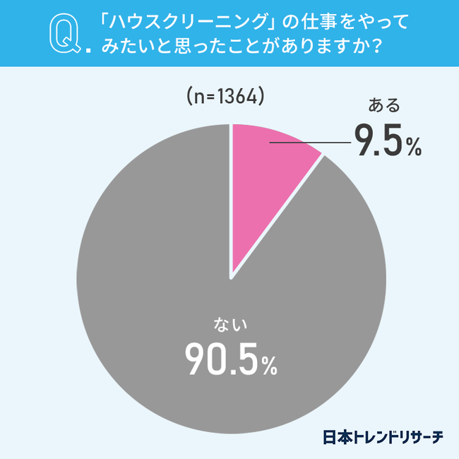 【ハウスクリーニング】9.5%が、仕事としてやってみたいと思ったことが「ある」