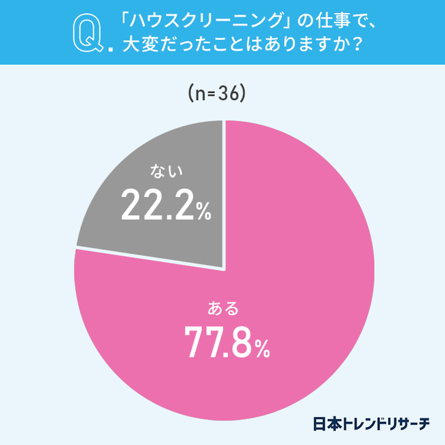 77.8%と多くの方が、ハウスクリーニングの仕事で、大変だったことは「ある」と回答しました。