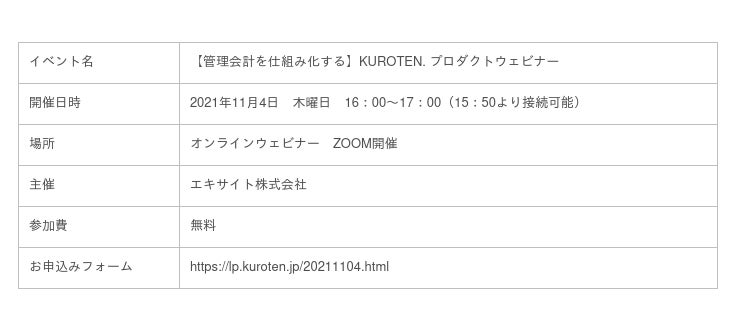 大型アップデートに伴い、ご利用方法や新機能などのご説明をする「KUROTEN.紹介ウェビナー」を実施します。
