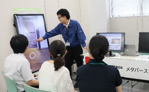 この体験会は、NTT東日本が社内外で導入を進めているVR、AI、IoTなどを活用した最先端の「DXツール・ノウハウ」を職員の方に見て・体験し、DX推進の取り組みを具体的にイメージいただくことで、各業務担当課におけるニーズを引き出し、お困りごとの解決に繋げていくとともに、市職員のデジタル人材育成を推進することを目的としています。
