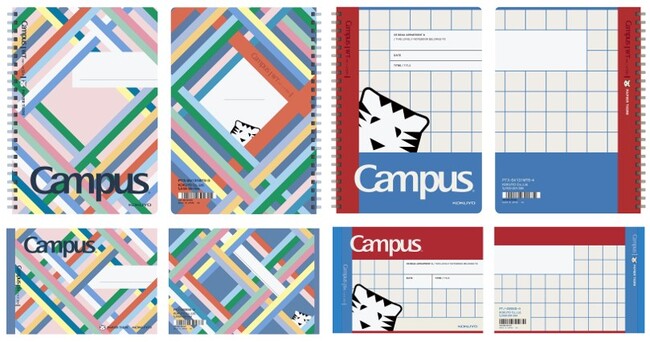 コクヨ独自開発のやわらかリングを採用し、折り返してコンパクトに使える「キャンパス ソフトリングノート」から4柄をラインアップ。必要なページだけをきれいに切り離せるミシン目入りで、罫線には5mm方眼のドット罫を採用しています。また、オンライン会議などのメモに適したB5サイズ半分の大きさの「キャンパスノート ハーフサイズ」から4柄をラインアップ。5mmの方眼罫を採用しました。