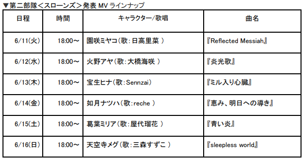 〜6月11日から第二部隊スローンズのキャラクターソングを毎日公開〜