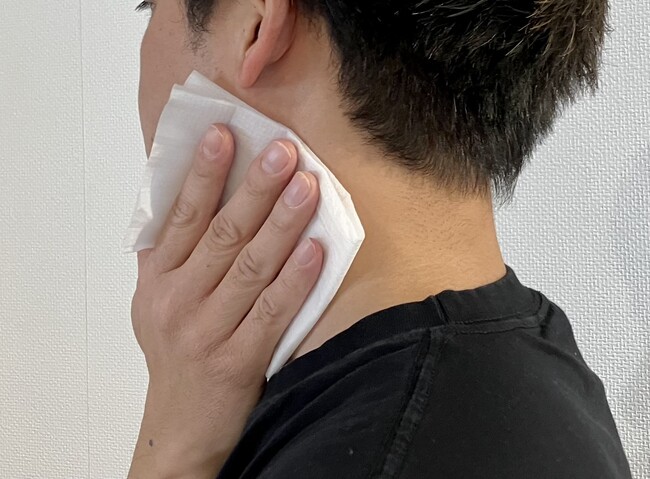 そこで「ギャツビー スペースシャワーペーパー」には、2005年からマンダムが取り組んでいるTRPチャネル研究によって生まれた“Kai-tech技術”を応用しました。このKai-tech技術をベースに、アルコールが使用できない環境でも清涼感を感じられる技術を開発し、エタノールフリーでも快適な心地よさを実現することに成功しました。