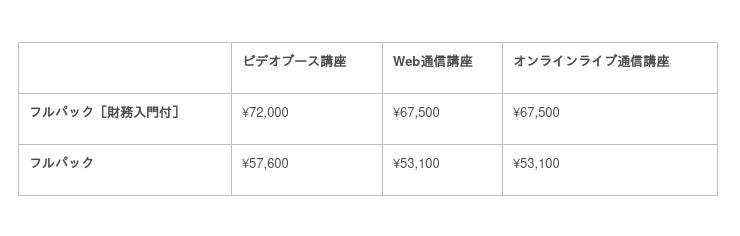 レギュラー講義の「企業経営・企業支援」「企業財務」「企業法務」「生産管理」「事業性評価」の全ての科目にオプション講座の「まとめ演習」がついたフルパックと、さらに財務会計が苦手な方でも安心の「財務入門」を含むフルパック[財務入門付]が10%OFFとお得にお申込みいただけます。