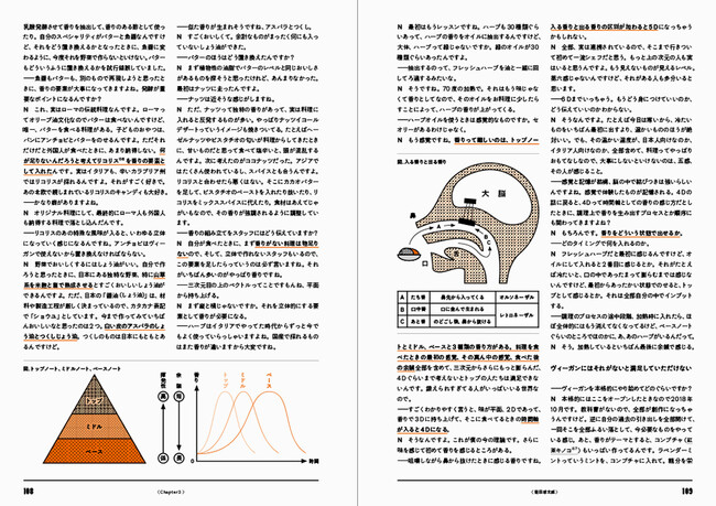 ゲームやパズルを楽しみながらスパイス使いが身につく体験型トレーニング、トップシェフ10名の対談&レシピ、香りを操るカレーレシピなど、スパイスを自由自在に使いこなすためのあらゆる情報を掲載。125種の豊富な図版と圧倒的な情報量で、スパイスと香りのすべてがわかる決定版です。