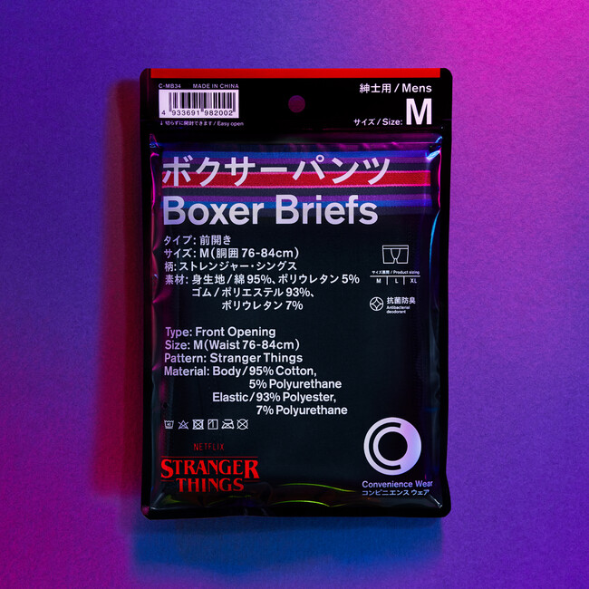 【内容】「ストレンジャー・シングス 未知の世界4」のポスターカラーをモチーフに配色したボクサーパンツです。抗菌防臭加工を施しました。