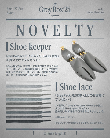 New Balanceアイテム2万円以上(税抜)ご購入のお客様に、「Grey Box’24」を記念して製作されたスペシャルシューキーパーをプレゼントいたします。