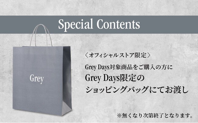 ※店内のGrey Days対象商品には「Grey Days」タグが付いています。詳しくは、ストアスタッフまでお声がけください。