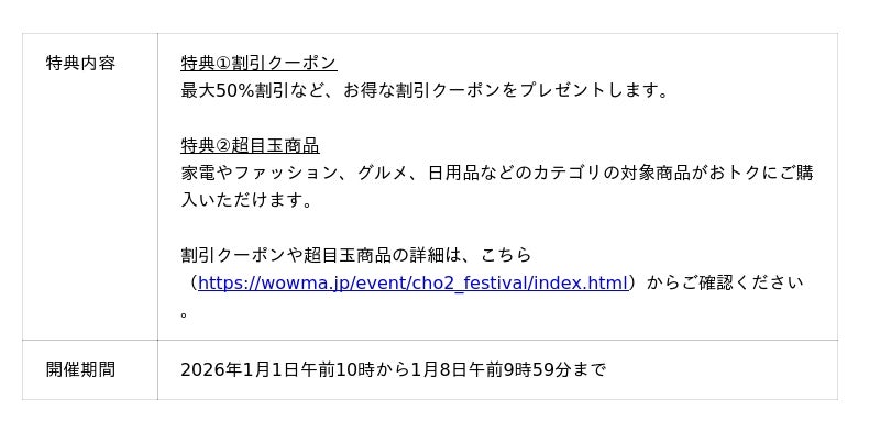 https://wowma.jp/event/cho2_festival/index.html