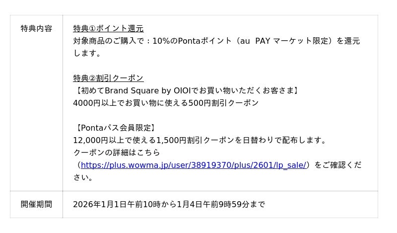 (1) Brand Square by OIOI(https://plus.wowma.jp/user/38919370/plus/2601/lp_sale/)