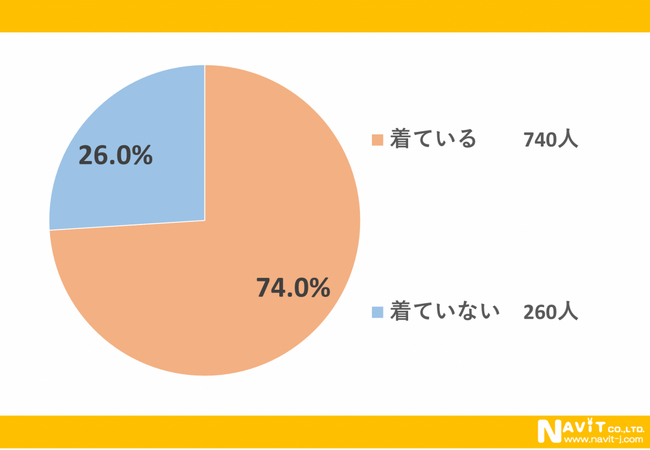 今年の冬は比較的暖冬傾向ですが、それでも冬は寒いものです。発熱・保温インナーを着ていますか?というアンケートに対して「着ている」と回答された方が74.0%と大部分の方が着ていると回答されています。