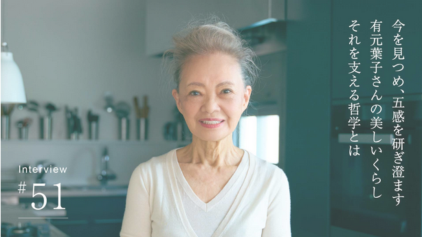 「"ちゃんと食べる"ということは、"ちゃんと生活して いる"ということ」と語る有元葉子さん。素材の味を生かしたシンプルなレシピだけでなく、衣食住すべてに及ぶ洗練されたくらし術で多くのファンを持つ人気料理研究家です。しかしご自身は「私は精一杯生きているただの人間ですよ」と笑います。無駄なものが削ぎ落とされた美しいライフスタイルの背景にある人生観から、「くらし、たのしく。」のヒントを探りました。