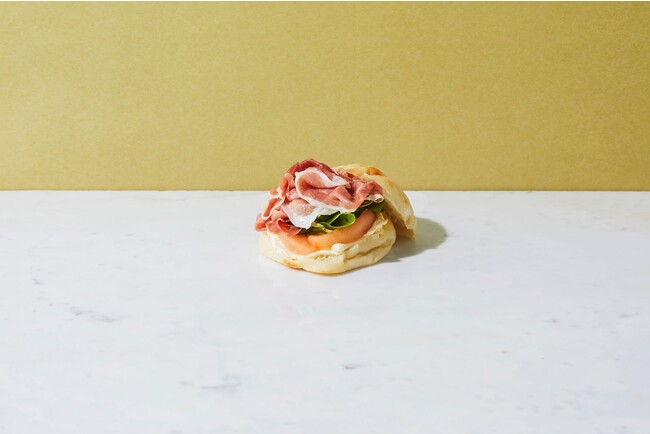 オリジナルのフォカッチャに香り豊かな生ハムと新鮮野菜をサンドし、パルミジャーノソースで